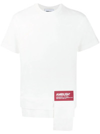 logo patch T-shirt Take a breath of fresh air with this white cotton logo patch T-shirt from AMBUSH. It's more than your average white Tee as its playful add-ons make it a unique daytime delight. It features a high low hem, a stretch fit, a round neck and short sleeves. Imported Composition Cotton 100% SIZE & FIT Model measurements Height 5 ft 10 in(1.78 m) Bust/Chest 33.07 in(84 cm) Hips 35.82 in(91 cm) Waist 26.96 in(68.5 cm) FittingInformation This piece is unisex. Please take care when selecting your size Cut for a relaxed fit for both men and women Made with a mid-weight fabric Washing instructions Machine Wash