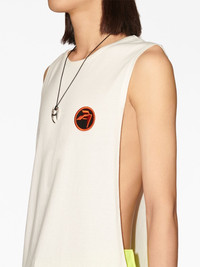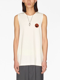 logo-patch vest Cut to an oversized fit, this AMBUSH vest's relaxed feel is elevated by the drop armholes. Made in Japan from soft and breathable cotton, this piece is adorned with a logo patch on the front for a branded finish. Highlights - White - Cotton - Round neck - Sleeveless - Drop armholes - Logo patch at chest - Straight hem Imported Composition Cotton 100%