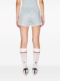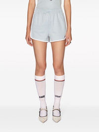 logo-plaque running shorts Highlights - Blue-grey - Elasticated waistband - Logo plaque - Contrasting trim - Thigh-length Made in Italy Composition Polyester 55%, Cotton 45% Washing instructions Read Manufacturer Guidelines