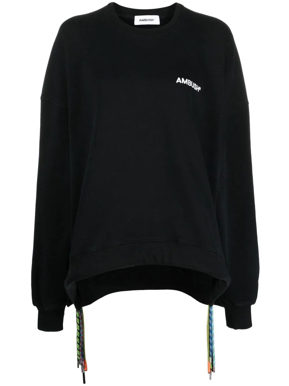 logo-print long-sleeve sweatshirt AMBUSH takes a streetwear-inspired approach to design in this long-sleeve sweatshirt, by featuring the brand's logo printed at the chest in a contrasting colourway. Rope detailing at the hem also references the brand's signature sense of innovation. Imported Composition Cotton 100%, Polyester 100% SIZE & FIT Model measurements Height 5 ft 11 in(1.8 m) Bust/Chest 33.07 in(84 cm) Hips 37.4 in(95 cm) Waist 25.19 in(64 cm) FittingInformation This piece fits true to size. We recommend you get your regular size Cut for a loose fit Made with a mid-weight fabric Washing instructions Machine Wash