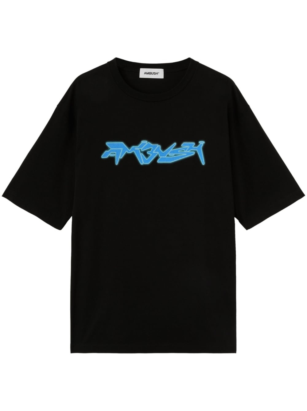 logo-print T-shirt This T-shirt by AMBUSH has been made in Japan from soft and breathable cotton. Sporting a classic black colourway, it is defined by a contrast blue logo print emblazoned across the chest. Highlights - Black - Cotton - Crew neck - Short sleeves - Logo print at chest - Straight hem - When buying this unisex item, keep in mind that it is graded in standard men's sizing Imported Composition Cotton 100%