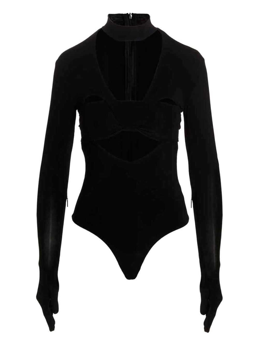 long-sleeve bodysuit Highlights - Black - High-neck - Long glove sleeves - Zip fastening at the back - Stretch-design - Just a reminder that this piece must be tried on over your own garments. Made in Italy Composition Viscose 92%, Elastane 8%