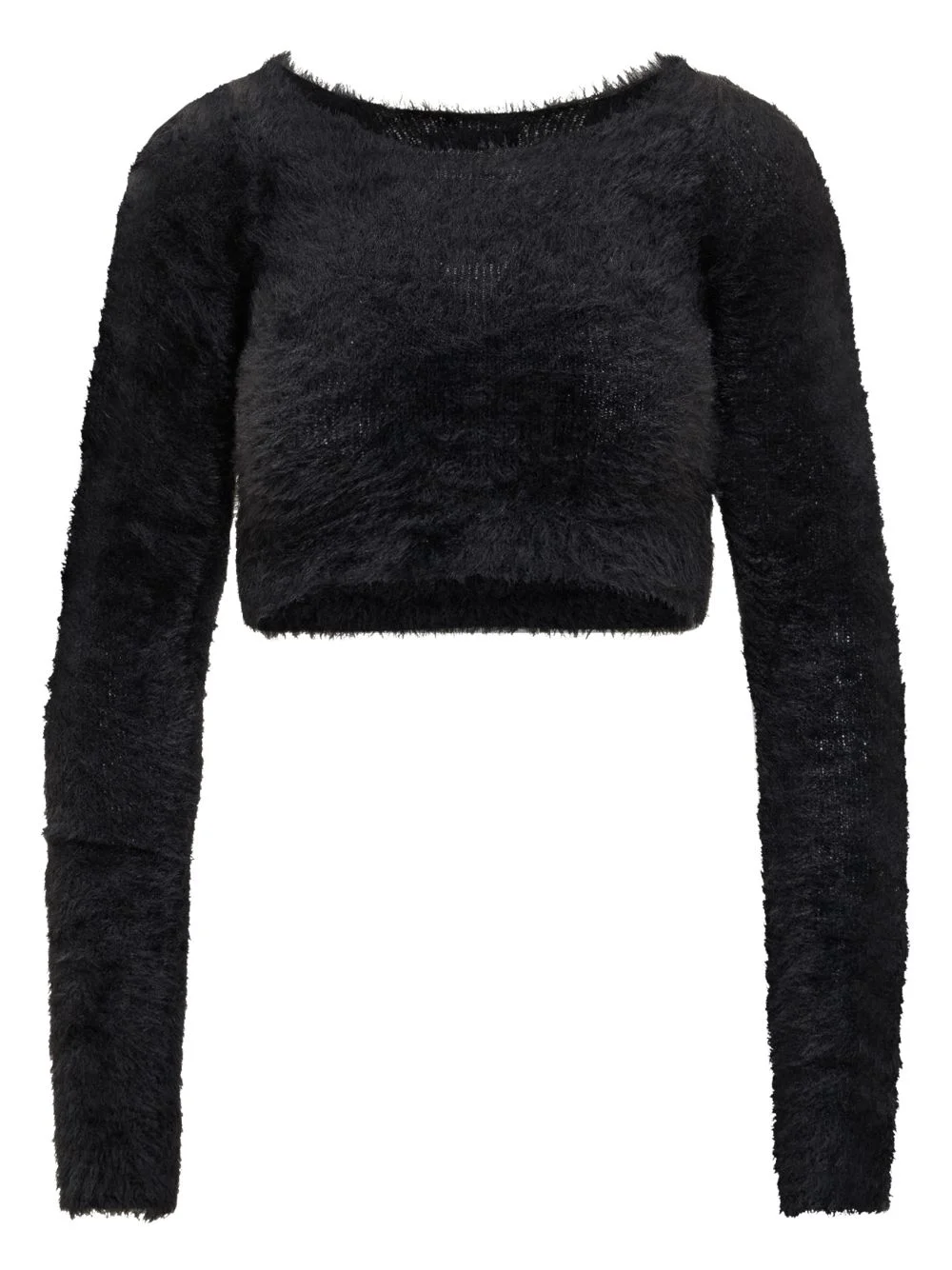 long-sleeve cropped sweater Highlights - Black - Textured finish - Scoop neck - Long sleeves - Straight hem - Cropped Made in Italy Composition Polyamide 100% Washing instructions Read Manufacturer Guidelines