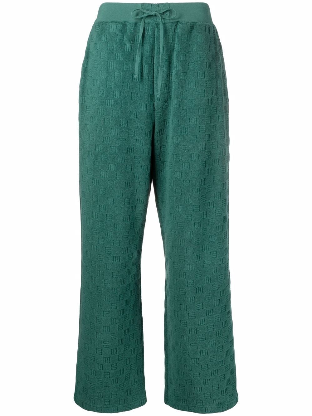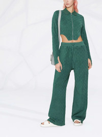 monogram jacquard knitted trousers AMBUSH's SS22 collection consists of nature-inspired garments, marrying modern silhouettes with playful textures. Showcasing the original monogram in all-over jacquard against the evergreen background, they're finished with a wide leg for an accentuated structure. Made in Italy Composition Outer: Cotton 79%, Polyamide 21% Lining: Cotton 100% SIZE & FIT Model measurements Height 5 ft 10 in(1.78 m) Bust/Chest 32.28 in(82 cm) Hips 35.03 in(89 cm) Waist 23.22 in(59 cm) FittingInformation This piece fits true to size. We recommend you get your regular size Designed to be fitted at the waist, loose over the leg Made with a mid-weight fabric Washing instructions Machine Wash