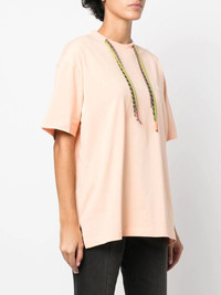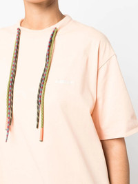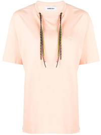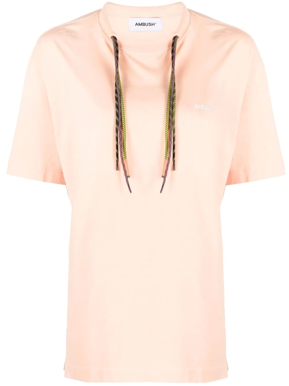 multi-cord logo-print T-shirt Ambush updates a classic silhouette with a contemporary aesthetic with this short-sleeve T-shirt. Imagined in a peach hue, this design is elevated by multi-cord detailing, reflecting the modern style of the brand. In addition, this design is given a recognisable touch with the addition of the brand's logo print. Imported Composition Cotton 100%, Polyester 100% SIZE & FIT Model measurements Height 5 ft 10 in(1.78 m) Bust/Chest 33.07 in(84 cm) Hips 35.82 in(91 cm) Waist 25.98 in(66 cm) FittingInformation This piece fits true to size. We recommend you get your regular size Cut for a loose fit Made with a mid-weight fabric Washing instructions Machine Wash