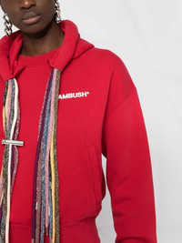 multi-drawstring logo hoodie Loose ends never looked so good. Adorned with drawstring detailing, this logo hoodie from Ambush offers a style upgrade with no strings attached. Lucky you. Imported Composition Cotton 100%, Polyester 100% SIZE & FIT Model measurements Height 5 ft 10 in(1.77 m) Bust/Chest 32.28 in(82 cm) Hips 35.03 in(89 cm) Waist 25.19 in(64 cm) FittingInformation This piece fits true to size. We recommend you get your regular size Cut for a loose fit Made with a mid-weight fabric Washing instructions Machine Wash