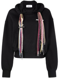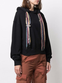 multi-drawstring logo hoodie black cotton embroidered logo at the chest drawstring hood long sleeves fitted-cuff sleeves Imported Composition Cotton 100%, Polyester 100% SIZE & FIT Model measurements Height 5 ft 10 in(1.78 m) Bust/Chest 33.46 in(85 cm) Hips 36.22 in(92 cm) Waist 23.22 in(59 cm) Washing instructions Machine Wash