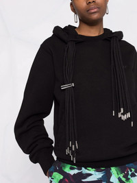 multicord long-sleeve hoodie AMBUSH is known for putting a contemporary twist on wardrobe favourites. This hoodie is a fine example, taking the classic long-sleeve design and updating it with multiple drawstring fastenings along the hood for a final touch. Imported Composition Cotton 100%, Polyester 100% SIZE & FIT Model measurements Height 5 ft 11 in(1.8 m) Bust/Chest 31.49 in(80 cm) Hips 36.61 in(93 cm) Waist 24.4 in(62 cm) FittingInformation This piece fits true to size. We recommend you get your regular size Cut for a loose fit Made with a mid-weight fabric Washing instructions Machine Wash