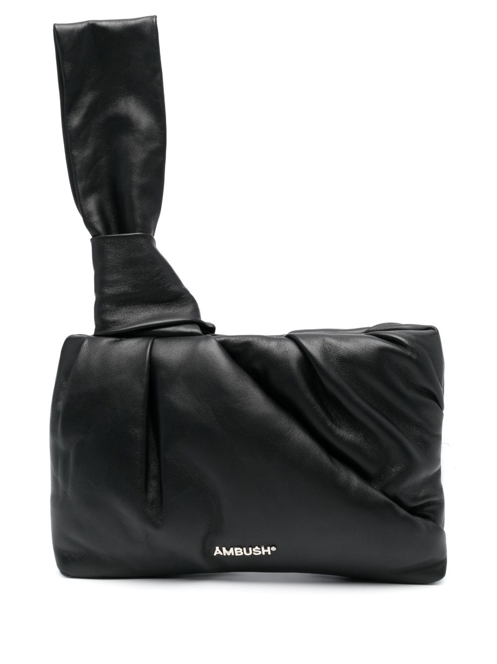 Nejiri leather clutch bag Emulating the malleability of paper, this Nejiri clutch bag from AMBUSH is crafted from nappa leather in black, carrying through the sensory feel of the piece. Highlights - Black - Nappa leather - Ruched detailing - Knot detailing - Wrist strap - Concealed zip fastening - Main compartment Made in Italy Composition Lining: Cotton 100% Outer: Leather 100% SIZE & FIT Model measurements Height 5 ft 9 in(1.76 m) Bust/Chest 33.07 in(84 cm) Hips 34.64 in(88 cm) Waist 25.59 in(65 cm) Measurement DEPTH 1.18 in(3 cm) HANDLE 5.51 in(14 cm) HEIGHT 6.69 in(17 cm) WIDTH 9.84 in(25 cm)