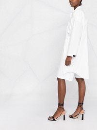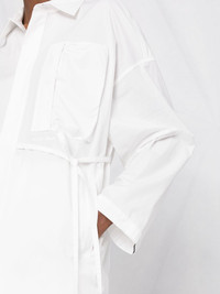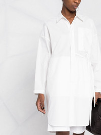 oversized waist-tie shirt dress AMBUSH offers a modern interpretation of the humble shirtdress. Made with the same poplin fabric, this relaxed-fitting iteration has a side waist-tie for subtle definition. Made in Italy Composition Cotton 100% SIZE & FIT Model measurements Height 5 ft 10 in(1.78 m) Bust/Chest 31.49 in(80 cm) Hips 37 in(94 cm) Waist 23.62 in(60 cm) FittingInformation This piece fits true to size. We recommend you get your regular size Cut for a loose fit Made with a mid-weight non-stretch fabric Washing instructions Machine Wash