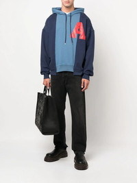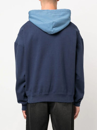panelled logo-print hoodie Highlights - Blue - Organic cotton - Jersey fleece - Colour-block panelled design - Logo print at the chest - Drawstring hood - Long sleeves - Straight hem Made in Italy Composition Lining: Cotton 100% Outer: Organic Cotton 100% SIZE & FIT Model measurements Height 6 ft 1 in(1.86 m) Bust/Chest 37.4 in(95 cm) Hips 34.64 in(88 cm) Waist 29.13 in(74 cm) FittingInformation This piece fits true to size. We recommend you get your regular size Cut for a loose fit Made with a mid-weight fabric Washing instructions Machine Wash