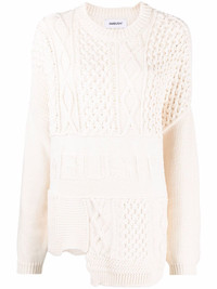 patchwork knitted jumper Each season is an opportunity for AMBUSH to present classic wardrobe staples with an updated edge. This knitted jumper is a fine example, crafted from an asparagus white cotton blend that takes on multiple different knitting techniques. Made in Italy Composition Cotton 64%, Nylon 36% SIZE & FIT Model measurements Height 5 ft 11 in(1.8 m) Bust/Chest 31.49 in(80 cm) Hips 35.82 in(91 cm) Waist 24.8 in(63 cm) FittingInformation This piece fits true to size. We recommend you get your regular size Cut for an oversized fit Made with a mid-weight fabric Washing instructions Hand Wash