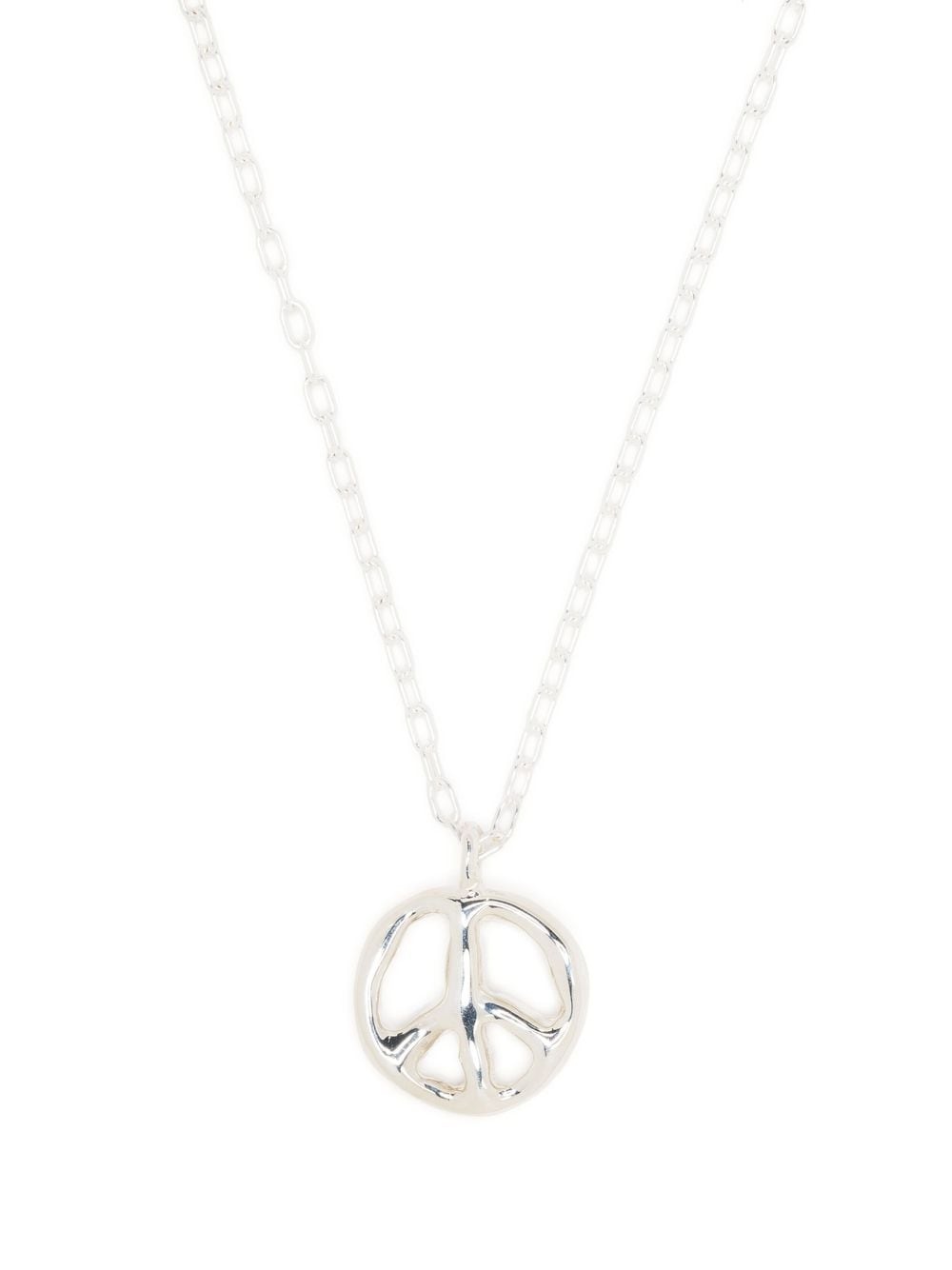 peace charm necklace AMBUSH makes a miniature statement with this sterling-silver necklace. The design features a peace-sign pendant suspended from a delicate chain. Imported SIZE & FIT Model measurements Height 6 ft 2 in(1.89 m) Bust/Chest 37.79 in(96 cm) Hips 37 in(94 cm) Waist 29.92 in(76 cm)