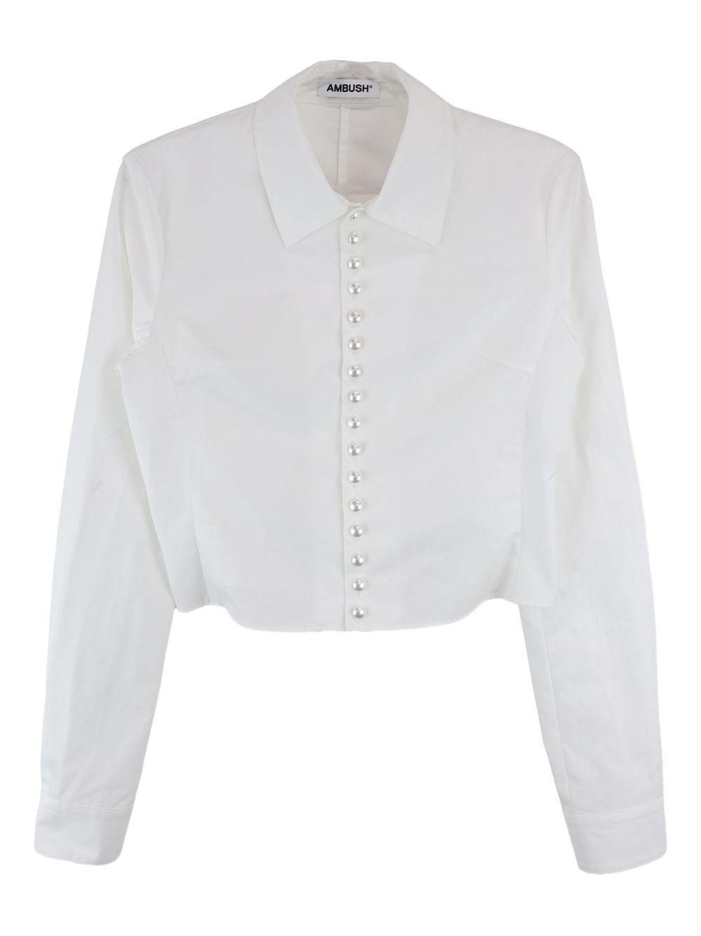pearl-button shirt Highlights - White - Long sleeves - Front button closure - Pearl embellishments - Classic collar - Back yoke detail Imported Composition Cotton 100%
