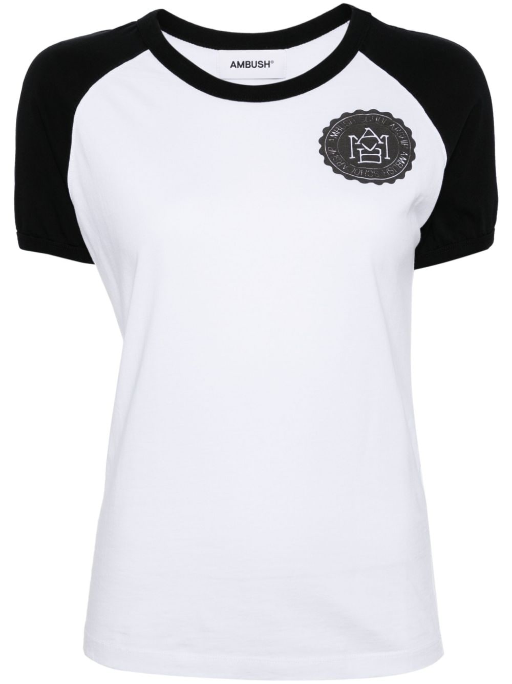 Raglan T-shirt Highlights - Blanc white - Cotton - Logo patch at the chest - Round neck - Short sleeves - Straight hem Imported Composition Cotton 100% SIZE & FIT Model measurements Height 5 ft 10 in(1.77 m) Bust/Chest 31.49 in(80 cm) Hips 35.43 in(90 cm) Waist 25.19 in(64 cm) FittingInformation Designed for a slim fit that sits just away from the body offering a close yet comfortable fit Made from a midweight non-stretch fabric, this piece offers minimal elasticity when worn