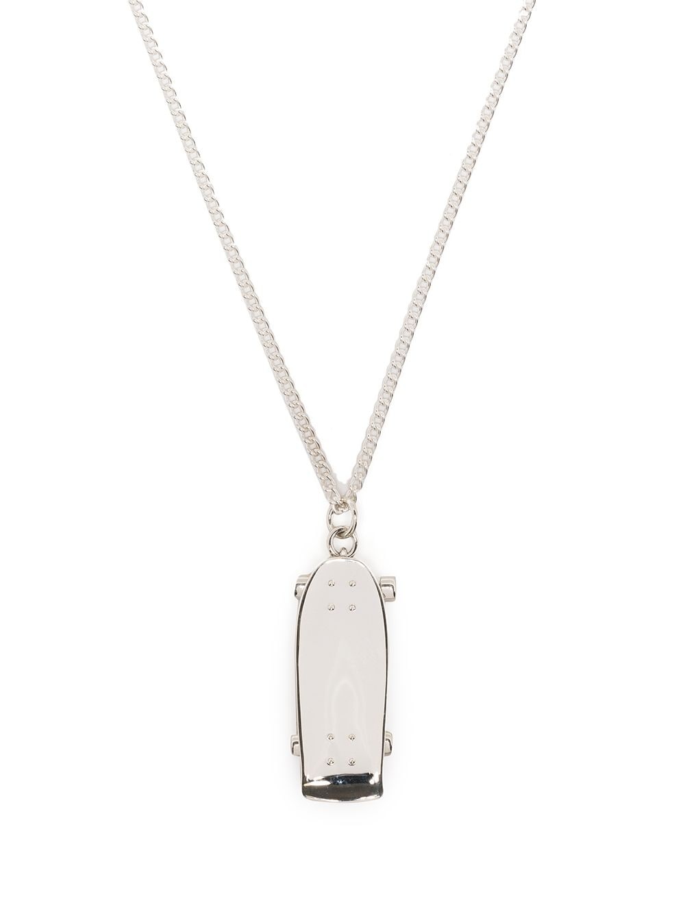 skate pendant necklace Having earned a solid reputation in jewellery making since its establishment in 2008, Ambush continues to present distinctive designs infused with modern appeal. A charismatic piece, this sterling silver necklace captures the brand’s daring aesthetic with its skate-shaped pendant. Imported SIZE & FIT Model measurements Height 5 ft 10 in(1.78 m) Bust/Chest 31.88 in(81 cm) Hips 34.64 in(88 cm) Waist 23.22 in(59 cm) Measurement CIRCUMFERENCE 20 in(50.8 cm) PENDANT LENGTH 1.29 in(3.3 cm) PENDANT WIDTH 0.47 in(1.2 cm)