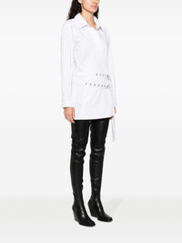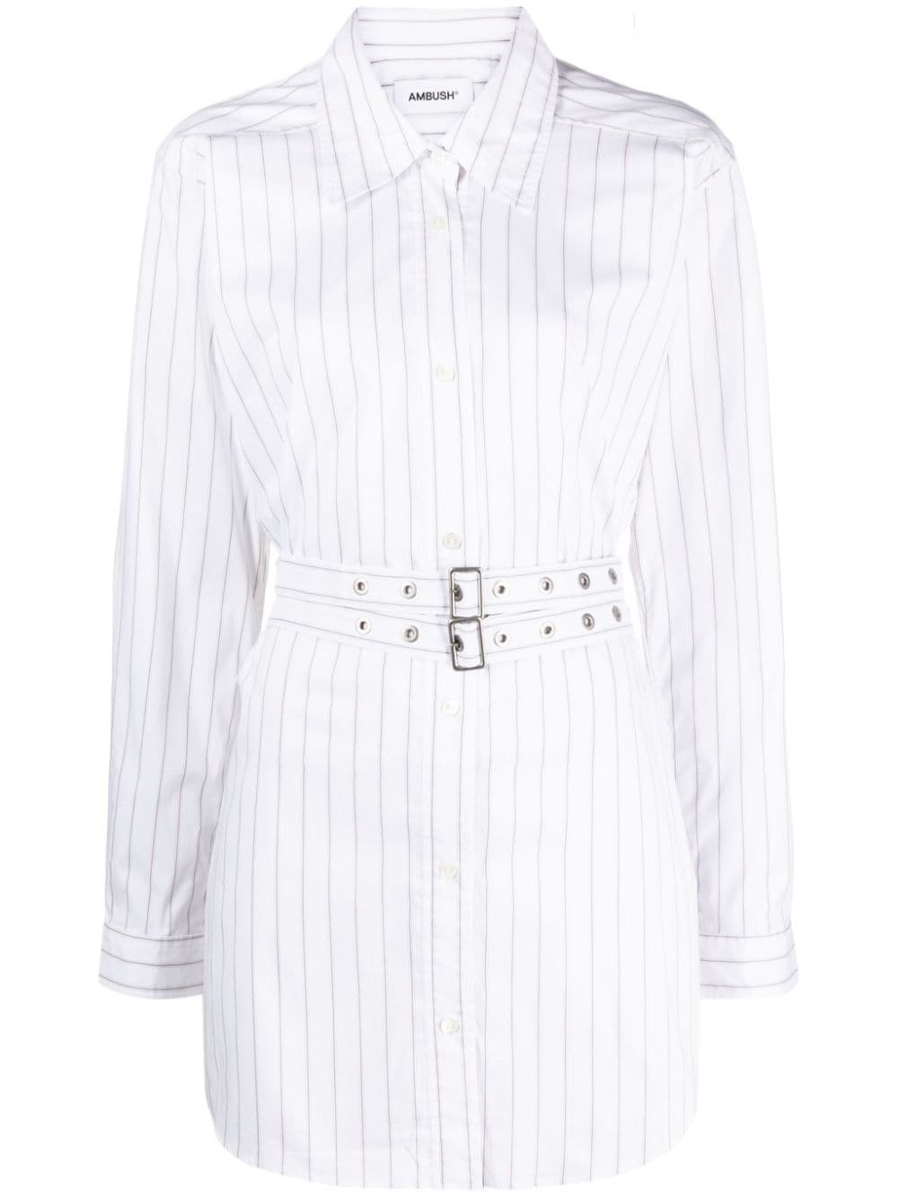 striped cotton-blend shirtdress AMBUSH continues to create bold designs that exude refined creativity, and this shirtdress is no different. Crafted from a cotton blend, it features a wrap design accentuated by vertical stripes and fastened by two buckled belts at the front. Highlights - White/black - Cotton blend - Vertical stripe pattern - Wrap design - Classic collar - Long sleeves - Buckle fastening - Buttoned cuffs - Straight hem - Thigh-length Imported Composition Cotton 74%, Polyester 26% SIZE & FIT Model measurements Height 5 ft 10 in(1.79 m) Bust/Chest 33.07 in(84 cm) Hips 35.82 in(91 cm) Waist 24.01 in(61 cm) FittingInformation Designed for a slim fit that sits just away from the body offering a close yet comfortable fit The belt offers adjustability for fitted preferences Made from a midweight non-stretch fabric This piece fits true to size – take your usual size Washing instructions Machine Wash