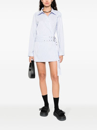 striped cotton-blend shirtdress AMBUSH continues to create bold designs that exude refined creativity, and this shirtdress is no different. Crafted from a cotton blend, it features a wrap design accentuated by vertical stripes and fastened by two buckled belts at the front. Highlights - Baby blue - Cotton blend - Vertical stripe pattern - Wrap design - Classic collar - Long sleeves - Buckle fastening - Buttoned cuffs - Straight hem - Thigh-length Imported Composition Cotton 74%, Polyester 26% SIZE & FIT Model measurements Height 5 ft 10 in(1.79 m) Bust/Chest 33.07 in(84 cm) Hips 35.82 in(91 cm) Waist 24.01 in(61 cm) FittingInformation Designed for a slim fit that sits just away from the body offering a close yet comfortable fit The belt offers adjustability for fitted preferences Made from a midweight non-stretch fabric This piece fits true to size – take your usual size