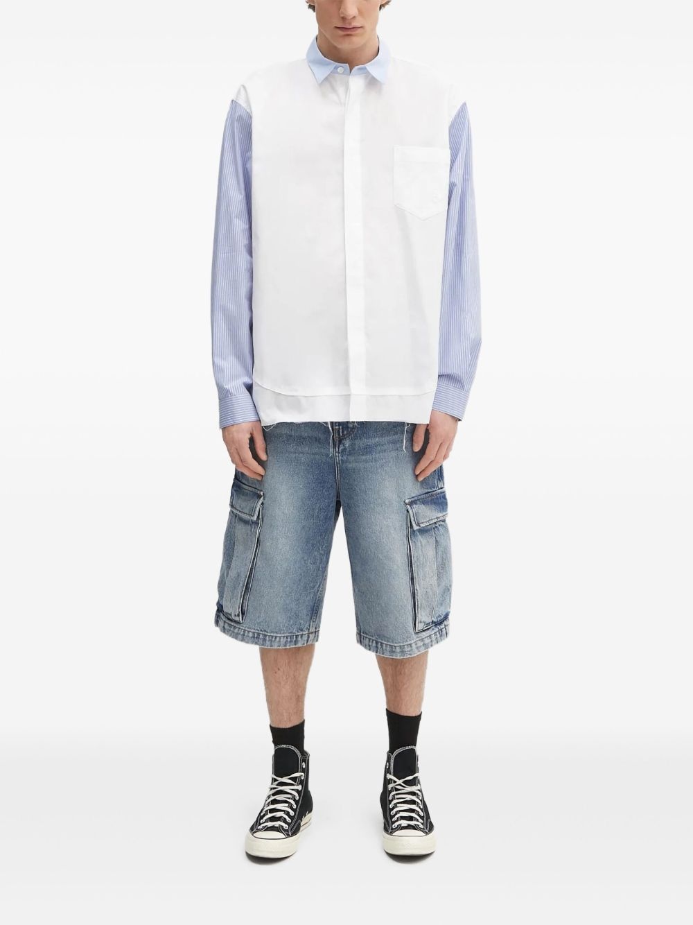 striped-panel shirt Highlights - White - Striped panel - Concealed button fastening - Chest pocket - Raw hem - Long sleeves Imported Composition Cotton 100% Washing instructions Read Manufacturer Guidelines