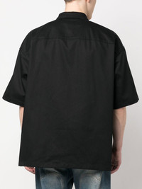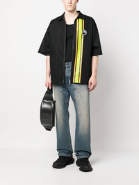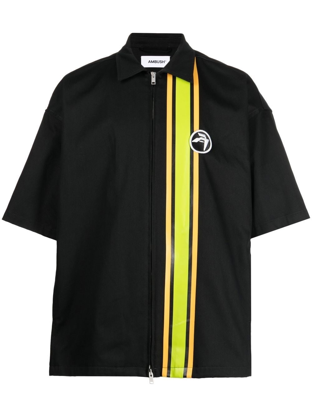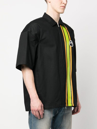 striped short-sleeve zipped shirt Highlights - Black/lime green/orange - Cotton - Stripe detailing - Logo patch at the chest - Classic collar - Front zip fastening - Straight hem - When buying this unisex item, keep in mind that it is graded in standard men's sizing. Made in Italy Composition Cotton 100% SIZE & FIT Model measurements Height 5 ft 10 in(1.78 m) Bust/Chest 33.46 in(85 cm) Hips 36.22 in(92 cm) Waist 23.22 in(59 cm) FittingInformation This piece is unisex. Please take care when selecting your size Designed for a loose fit for men and an oversized fit for women Made with a mid-weight non-stretch fabric