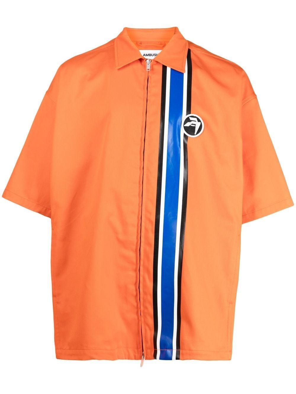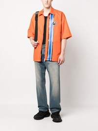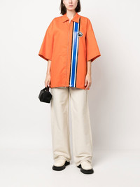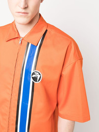 striped zipped short-sleeve shirt Highlights - Orange/multicolour - Cotton - Stripe detailing - Classic collar - Front zip fastening - Short sleeves - Straight hem - When buying this unisex item, keep in mind that it is graded in standard men's sizing. Made in Italy Composition Cotton 100% SIZE & FIT Model measurements Height 5 ft 10 in(1.78 m) Bust/Chest 33.46 in(85 cm) Hips 36.22 in(92 cm) Waist 23.22 in(59 cm) FittingInformation This piece is unisex. Please take care when selecting your size Designed for a loose fit for men and an oversized fit for women Made with a mid-weight non-stretch fabric