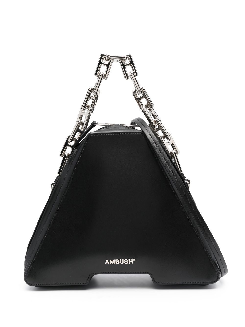 Tri tote bag AMBUSH's signature A bag is imagined in a classic black hue here. This creates contrast with the polished silver-tone hardware for a contemporary finish. Made in Italy Composition Outer: CALFSKIN 100% SIZE & FIT Model measurements Height 5 ft 10 in(1.78 m) Bust/Chest 31.49 in(80 cm) Hips 37 in(94 cm) Waist 23.62 in(60 cm)