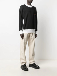 two-tone logo-print sweatshirt black/white/orange cotton-blend two-tone design logo print at the chest crew neck long sleeves elasticated cuffs elasticated hem Made in Italy Composition Viscose 100%, Cotton 77%, Acrylic 23% SIZE & FIT Model measurements Height 6 ft 1 in(1.85 m) Bust/Chest 39.76 in(101 cm) Hips 36.61 in(93 cm) Waist 27.95 in(71 cm) Measurement CHEST 47.24 in(120 cm) SLEEVE LENGTH 21.25 in(54 cm) LENGTH 24.8 in(63 cm) Shoulder Width 27.55 in(70 cm) Washing instructions Machine Wash