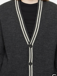 varsity-letter wool cardigan Highlights - Dark grey - Wool - V-neck - Button fastening - Contrasting stripe detailing - Applique letter detail Made in Italy Composition Wool 100% Washing instructions Read Manufacturer Guidelines