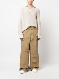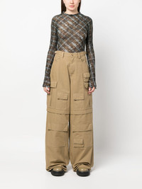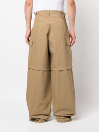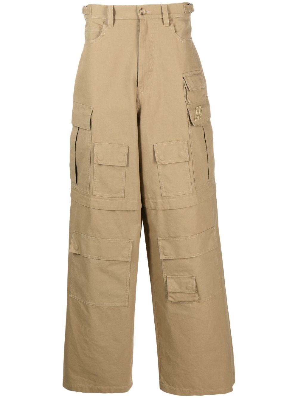 wide-leg cargo trousers AMBUSH's take on cargo styles, these beige trousers are cut from pure cotton with an exaggerated wide leg. They're fitted with buckled side tabs and multiple oversized pockets – elements reminiscent of more classic styles – and stitched with a logo patch. Highlights - Beige - Cotton - Logo patch to the side - Mid-rise - Belt loops - Button fly fastening - Classic five pockets - Multiple cargo pockets - Wide leg - When buying this unisex item, keep in mind that it is graded in standard men's sizing. Made in Italy Composition Outer: Cotton 100% Lining: Cotton 100% SIZE & FIT Model measurements Height 5 ft 10 in(1.78 m) Bust/Chest 33.07 in(84 cm) Hips 35.82 in(91 cm) Waist 26.96 in(68.5 cm) FittingInformation This piece is unisex and is designed with a wide-leg, whether you usually select women's or men's sizes The adjustable tabs allow for fitted preferences Made from a midweight non-stretch fabric