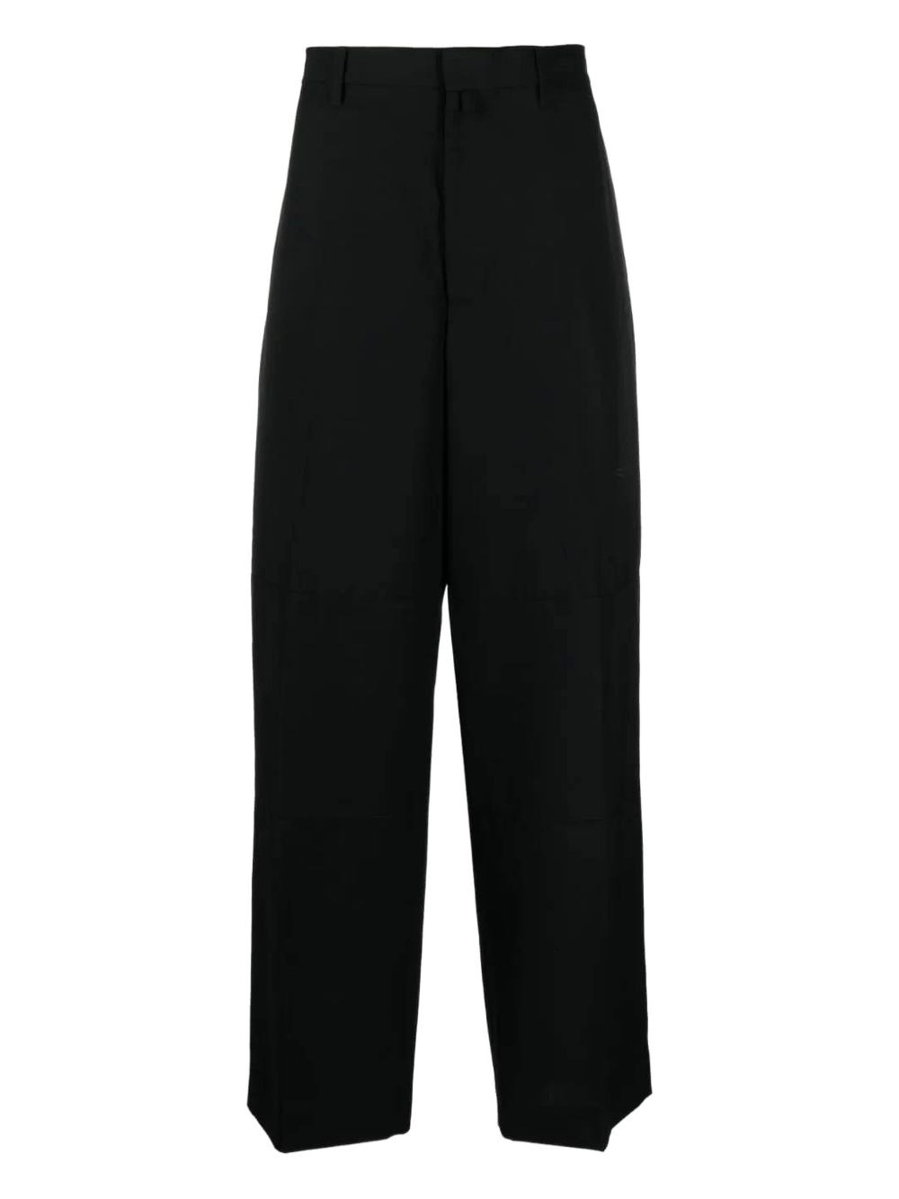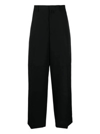 wide-leg wool suit trousers AMBUSH offers a relaxed take on formal trousers with a wide-leg silhouette. Crafted with soft virgin wool, the black trousers feature a pleated detail on the front and jetted pockets to the rear. Highlights - Black - Virgin wool - Mid-rise - Belt loops - Concealed front button fastening - Two rear jetted pockets - Wide leg - Pleat detailing - Straight hem Made in Italy Composition Outer: Virgin Wool 100% Lining: Cotton 50%, Viscose 50%