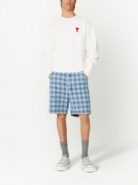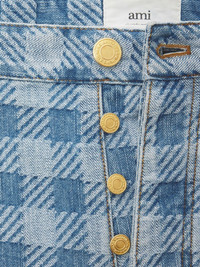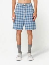 Alex checkered denim shorts blue cotton check pattern mid-rise belt loops concealed front fastening classic five pockets wide leg knee-length Imported Composition Cotton 100%