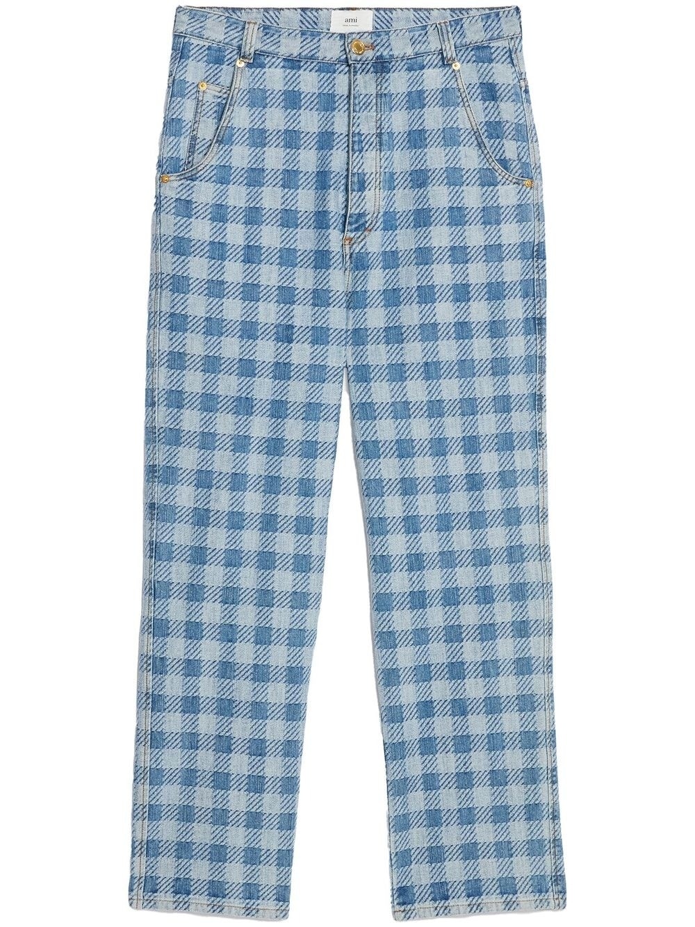 Alex-fit checkered straight jeans blue cotton check pattern mid-rise belt loops concealed front fastening classic five pockets straight leg Imported Composition Cotton 100%