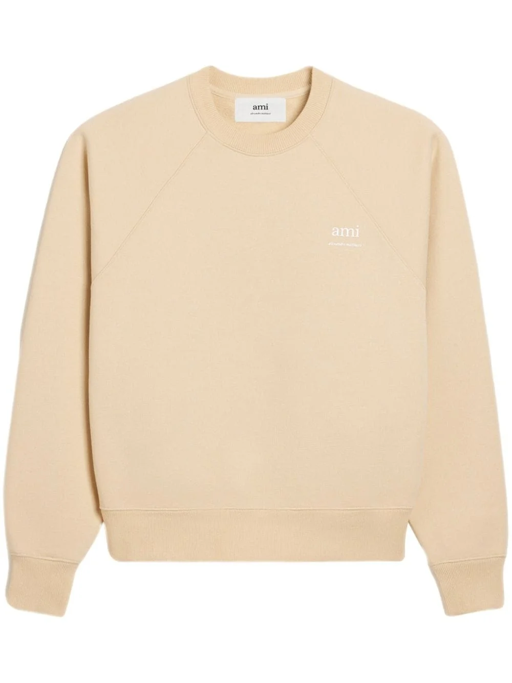 Ami Alexandre Mattiussi sweatshirt Highlights - Cream white - Stretch organic cotton - Fleece texture - Logo print at the chest - Ribbed trim - Crew neck - Long raglan sleeves - Straight hem - When buying this unisex item, keep in mind that it is graded in standard men's sizing. Imported Composition Organic Cotton 99%, Elastane 1% SIZE & FIT Measurement CHEST 44.88 in(114 cm) WAIST 42.51 in(108 cm) SLEEVE LENGTH 30.7 in(78 cm) Washing instructions Read Manufacturer Guidelines