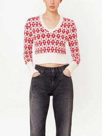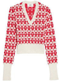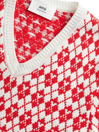 Ami de Coeur argyle jumper Ami de Coeur argyle jumper from AMI Paris featuring red, white, merino wool blend, signature Ami de Coeur monogram motif, argyle intarsia knit, V-neck, long sleeves, cropped and ribbed edge. Imported Composition Merino 48%, Polyamide 47%, Polyester 5% Washing instructions Hand Wash