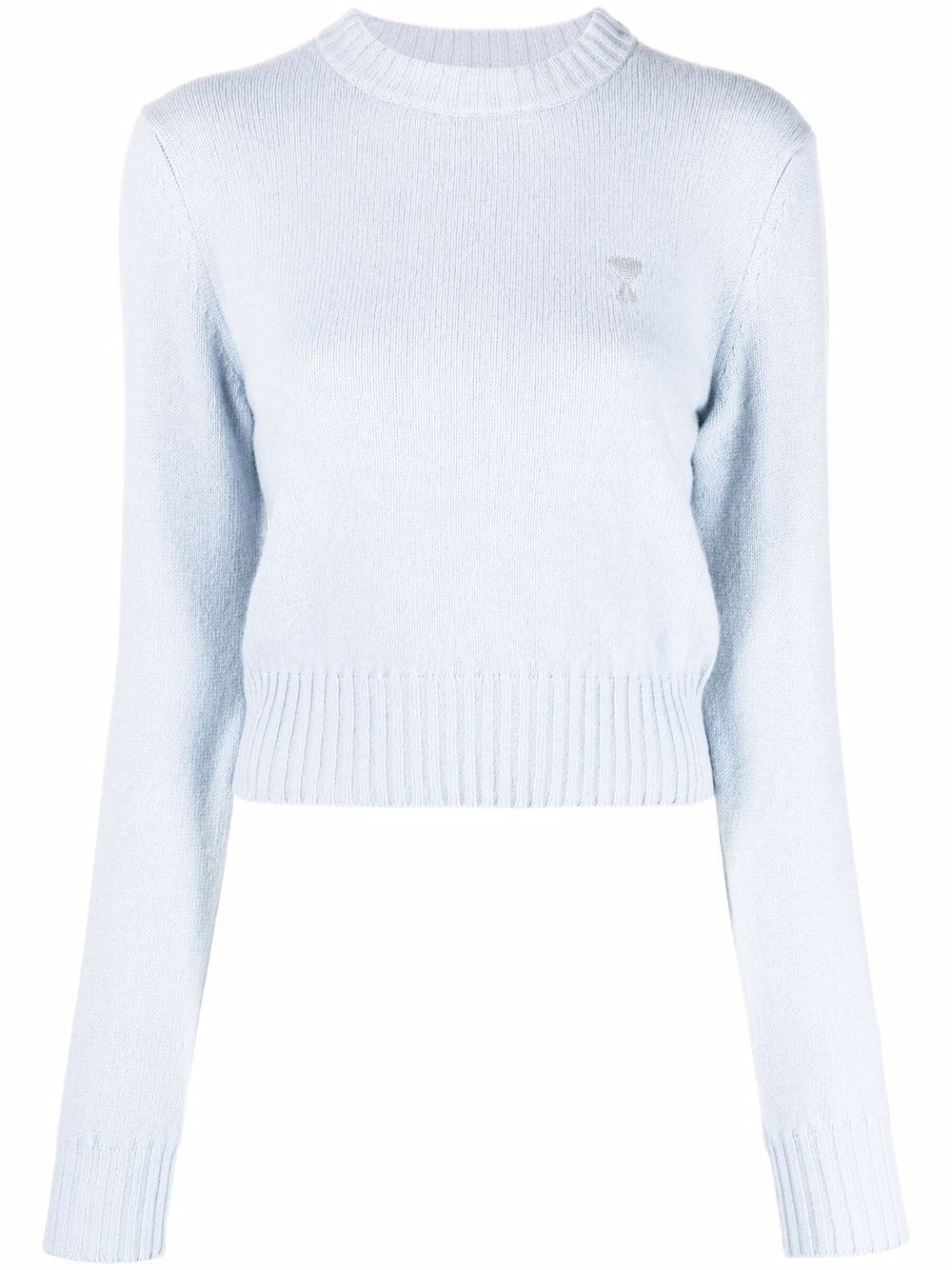 Ami De Coeur cashmere sweater Ami means friend in French, creative director Alexandre Mattiussi uses this to convey his relaxed and friendly approach to fashion with the Ami De Coeur monogram. For AW22, the recognisable emblem is seen at the chest of this pale blue cashmere jumper in a contrasting grey hue, capturing their nonchalant style. Highlights - Pale blue - Cashmere - Signature ami de coeur monogram motif - Embroidered logo at the chest - Round neck - Long sleeves - Ribbed edge - Straight hem Made in Italy Composition Cashmere 100% SIZE & FIT Model measurements Height 5 ft 10 in(1.78 m) Bust/Chest 31.49 in(80 cm) Hips 36.22 in(92 cm) Waist 25.59 in(65 cm) FittingInformation This piece fits true to size. We recommend you get your regular size Cut for a slim fit Made with a mid-weight fabric