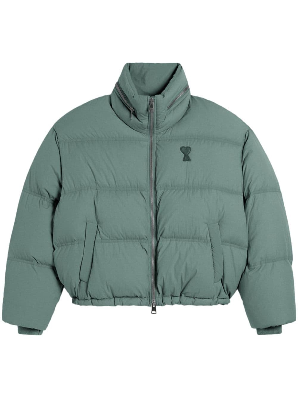 Ami de Coeur down puffer jacket Highlights - Mint green - Feather down - Quilted - Padded design - Signature ami de coeur monogram motif - Silver-tone hardware - Front zip fastening - Concealed hood - Slip pockets to the sides Imported Composition Outer: Polyamide 98%, Polyurethane 2% Lining: Feather Down 100%