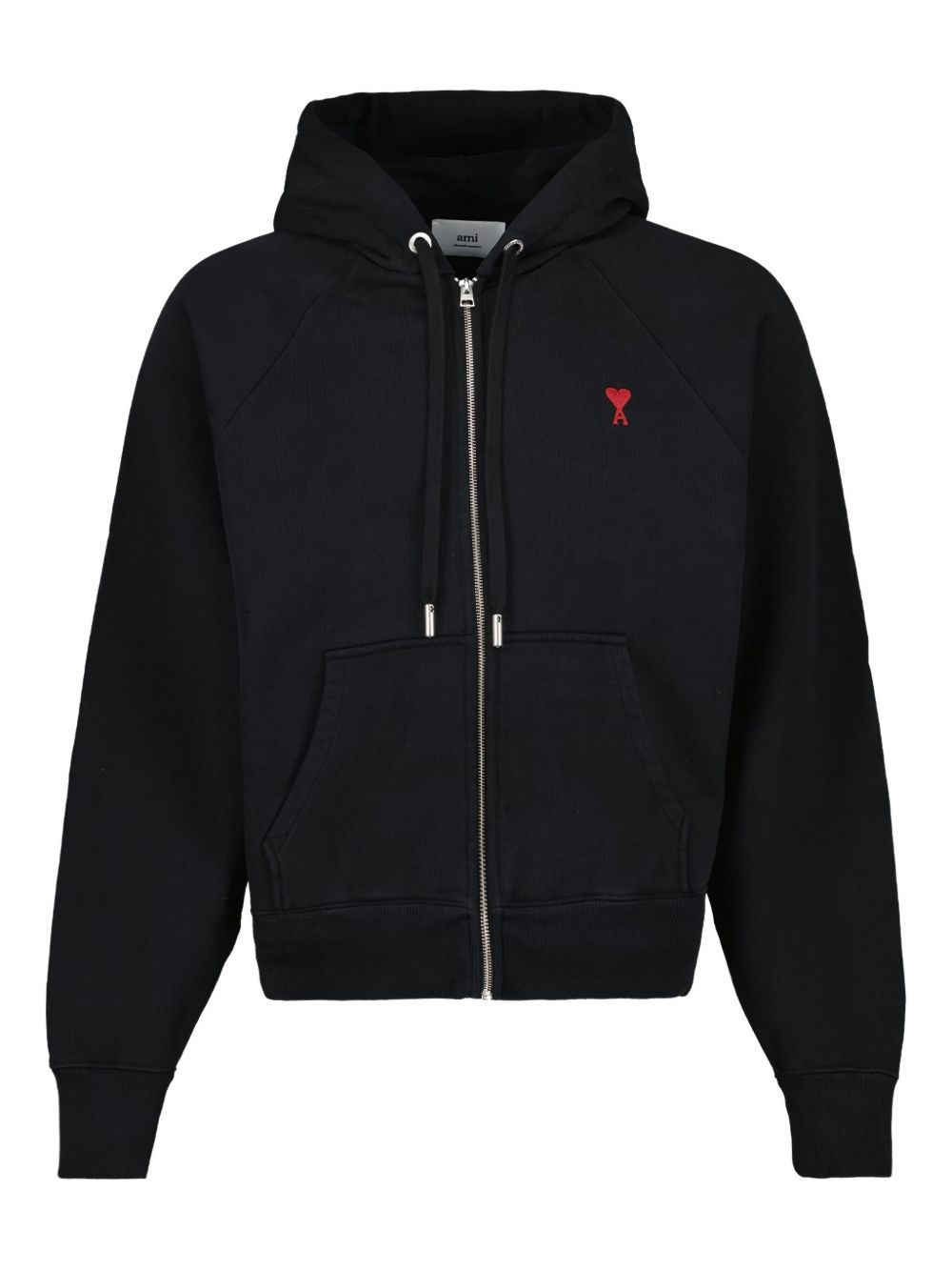 Ami de Coeur-embroidered zip-up hoodie Cut from soft organic cotton in Portugal, this zip-up hoodie from AMI Paris is cut to a relaxed silhouette and emblazoned with an Ami de Coeur embroidered motif at the chest for a subtle take on branding. Highlights - Black - Stretch organic cotton - Signature ami de coeur monogram motif - Embroidered logo at the chest - Drawstring hood - Front zip fastening - Long raglan sleeves - Two front pouch pockets - Ribbed cuffs and hem - Straight hem Imported Composition Organic Cotton 100%