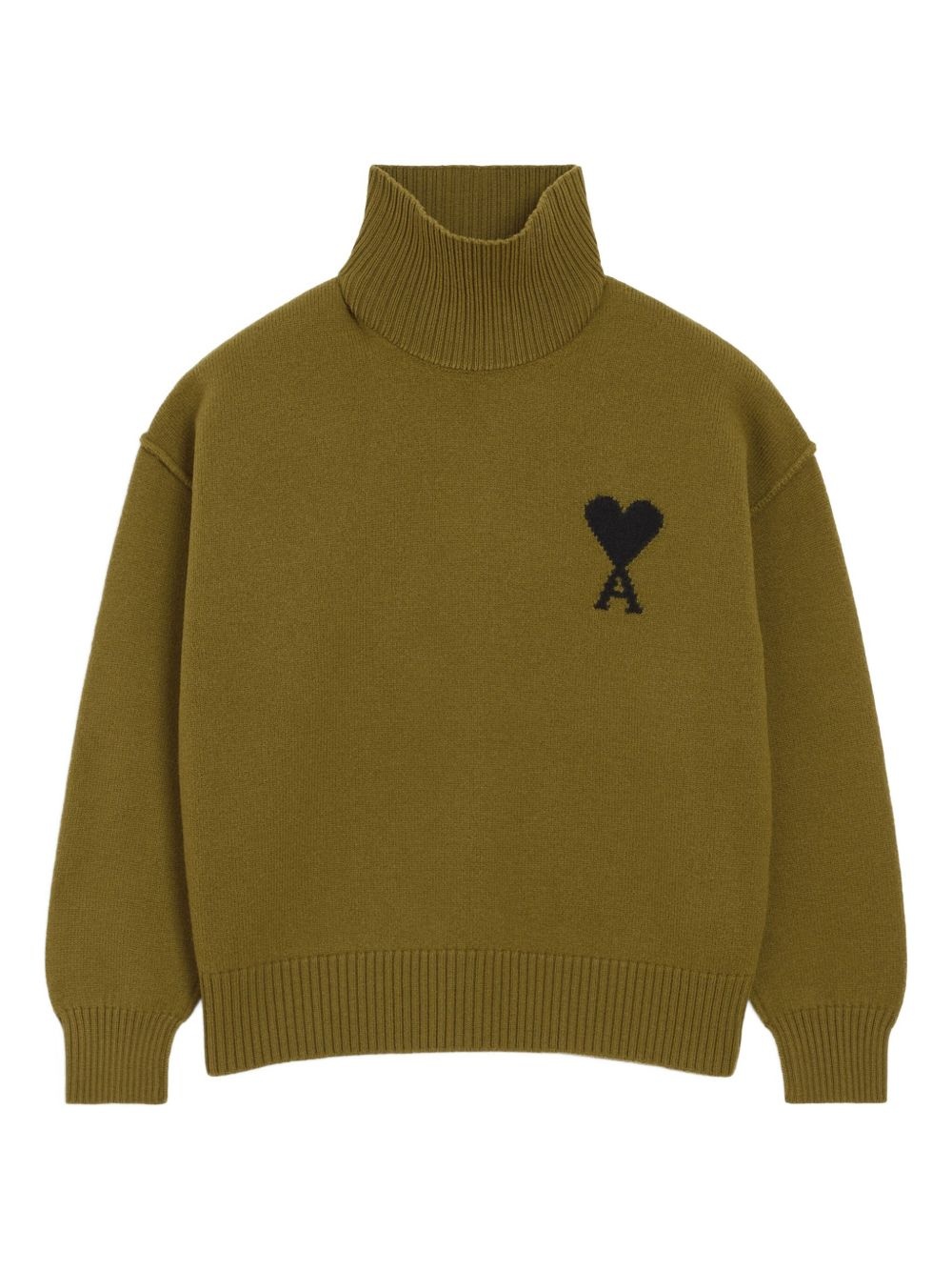 KHAKI WOOL AMI DE COEUR FUNNEL NECK SWEATER