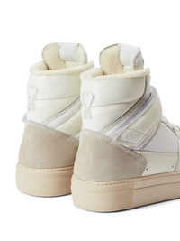 Ami de Coeur high-top sneakers A cream white colourway creates a minimal look for these high-top sneakers from AMI Paris. This pared-back approach is continued with the piece's branding - an Ami de Coeur motif makes an understated appearance to the rear. Imported Composition Leather 100%