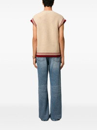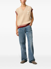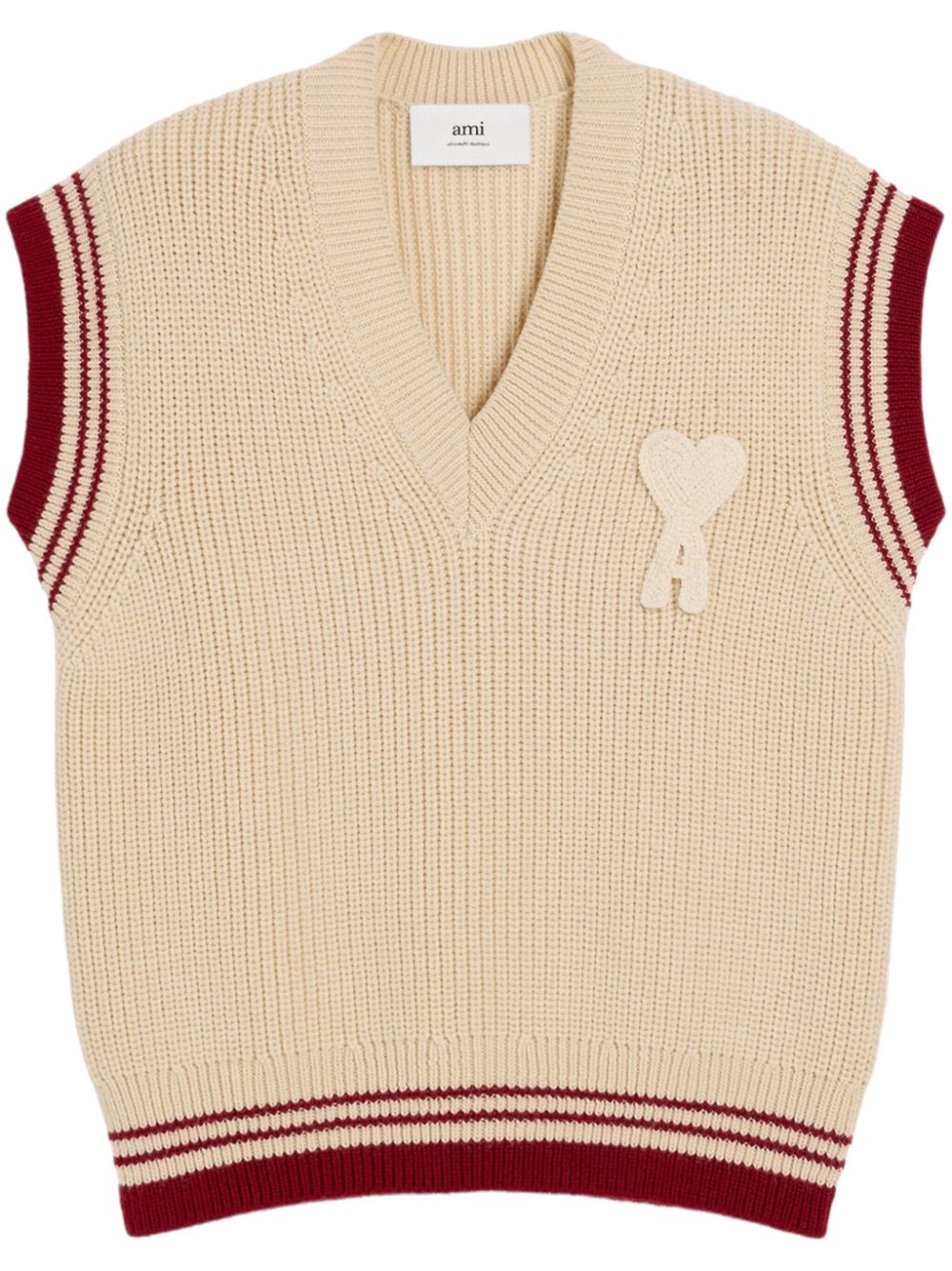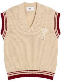 Ami de Coeur knitted vest Highlights - Beige - Striped border - V-neck - Sleeveless - When buying this unisex item, keep in mind that it is graded in standard men's sizing. Imported Composition Virgin Wool 100%