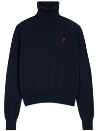 Ami de Coeur high-neck jumper Highlights - Navy blue - Merino wool - Knitted construction - Fine knit - Embroidered logo at the chest - High neck - Long sleeves - Ribbed cuffs and hem - Straight hem - When buying this unisex item, keep in mind that it is graded in standard men's sizing. Imported Composition Merino 100% Washing instructions Read Manufacturer Guidelines