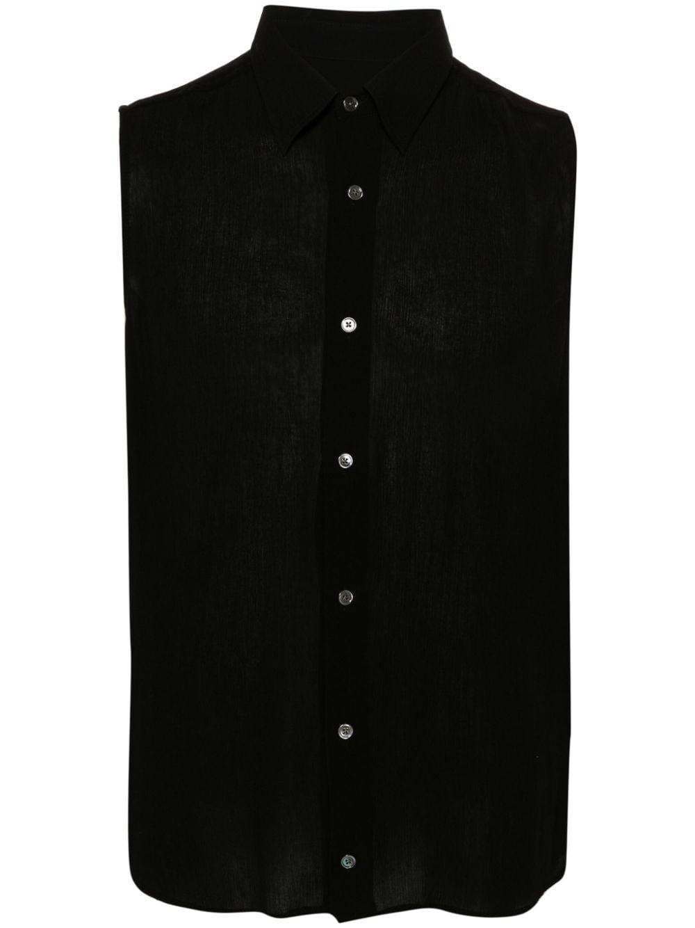 Ami-de-Coeur-motif shirt Highlights - Black - Georgette crepe - Semi-sheer construction - Crinkled finish - Signature ami de coeur monogram motif - Straight-point collar - Front button fastening - Sleeveless - Drop armholes - Curved hem - Unlined - When buying this unisex item, keep in mind that it is graded in standard men's sizing. Imported Composition Viscose 100% SIZE & FIT Model measurements Height 5 ft 10 in(1.77 m) Bust/Chest 29.92 in(76 cm) Hips 34.25 in(87 cm) Waist 23.62 in(60 cm) Measurement CHEST 35.43 in(90 cm) WAIST 32.28 in(82 cm) FittingInformation This piece is unisex – expect a slim fit if you usually select men's sizing; expect a looser fit if you usually select women's sizes Made from a lightweight non-stretch fabric Washing instructions Dry Clean Only