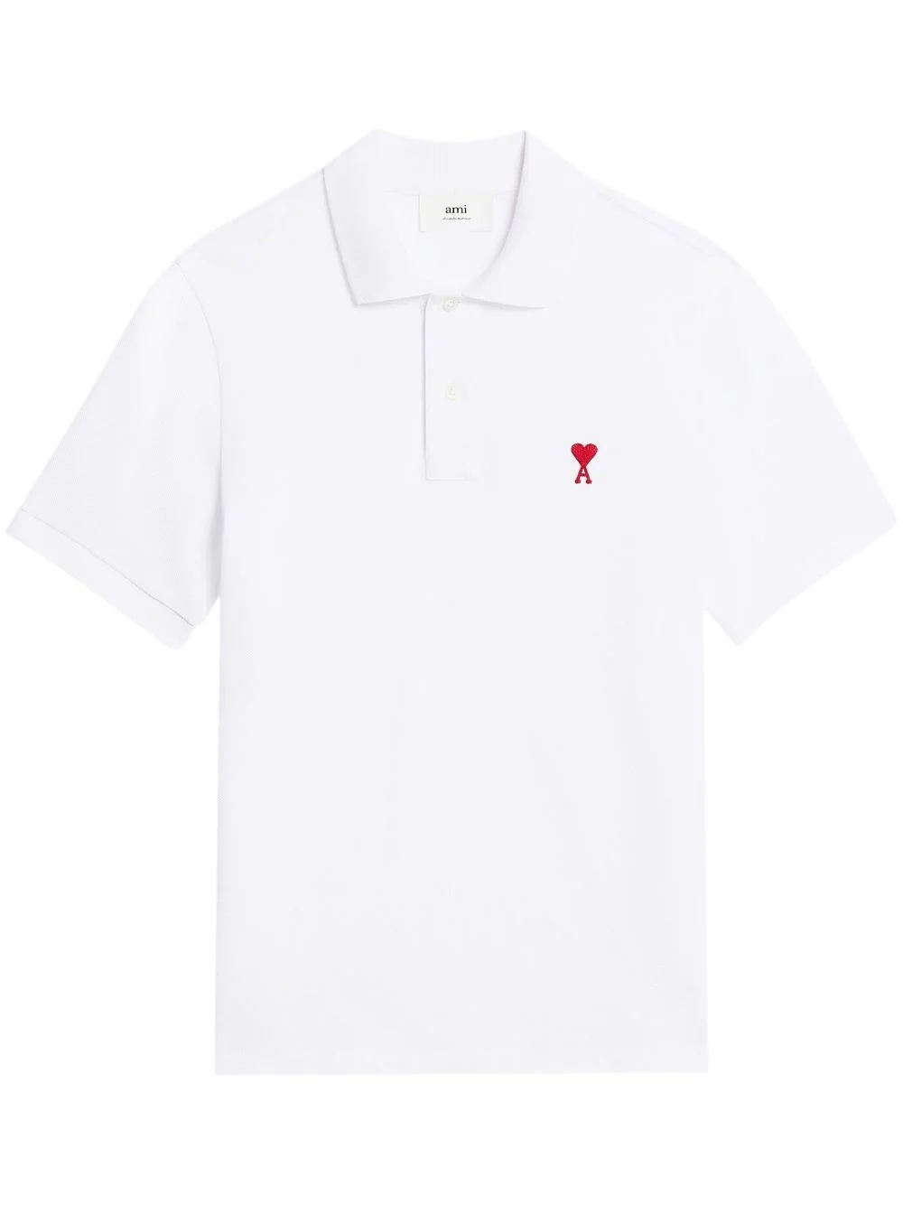 Ami De Coeur polo shirt The Ami de Coeur motif from AMI Paris is representative of deep, meaningful friendship. Crafted from organic cotton with a pique texture, this short-sleeve polo shirt is embroidered with the logo motif at the chest. Highlights - White - Organic cotton - Signature ami de coeur monogram motif - Pique weave - Spread collar - Short front button fastening - Short sleeves - Straight hem Imported Composition Organic Cotton 100% Washing instructions Machine Wash