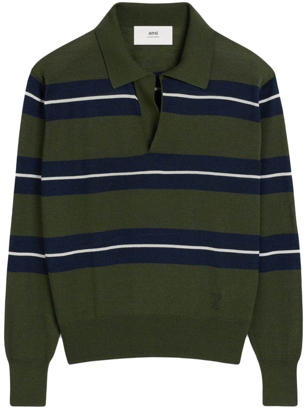 Ami de Coeur polo shirt Highlights - Green - Front button placket - Polo collar - Horizontal stripe pattern - Long sleeves Made in Italy Composition Wool 75%, Silk 25%