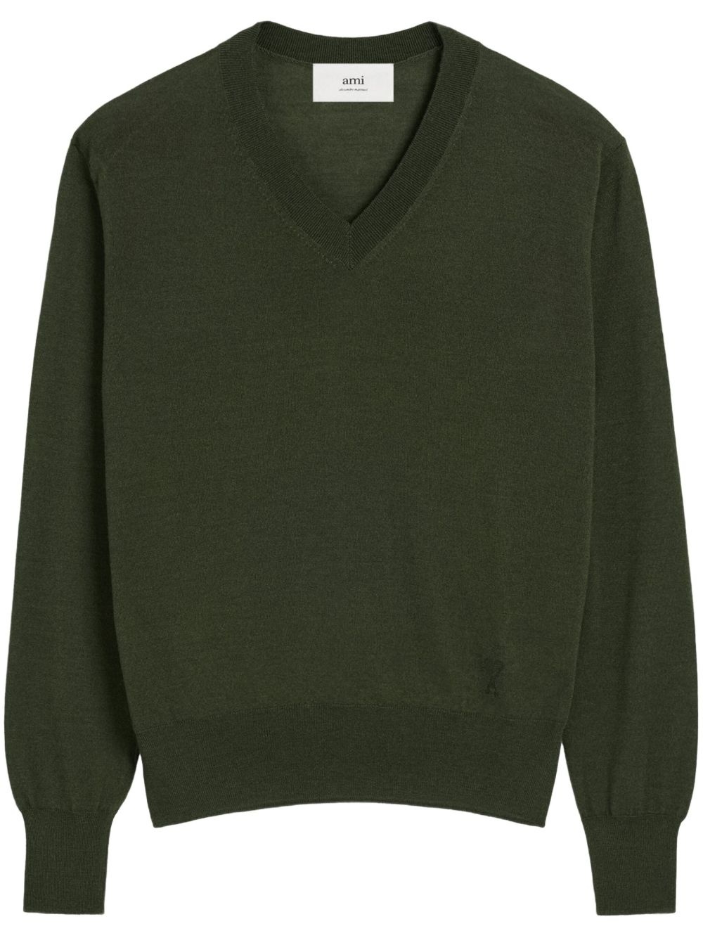 Ami de Coeur sweater Highlights - Moss green - V-neck - Long sleeves - Ribbed cuffs and hem Made in Italy Composition Wool 75%, Silk 25%
