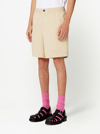Ami de Coeur track shorts light beige cotton elasticated drawstring waistband front button fastening two side slit pockets straight leg below-knee length Imported Composition Cotton 100%