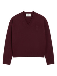 BURGUNDY WOOL AMI DE COEUR V NECK SWEATER