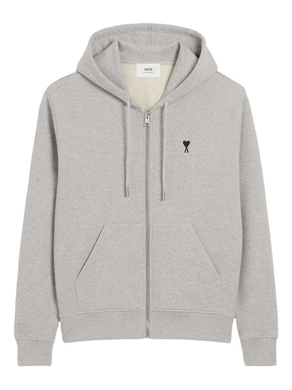GREY COTTON ZIPPED AMI DE COEUR HOODIE
