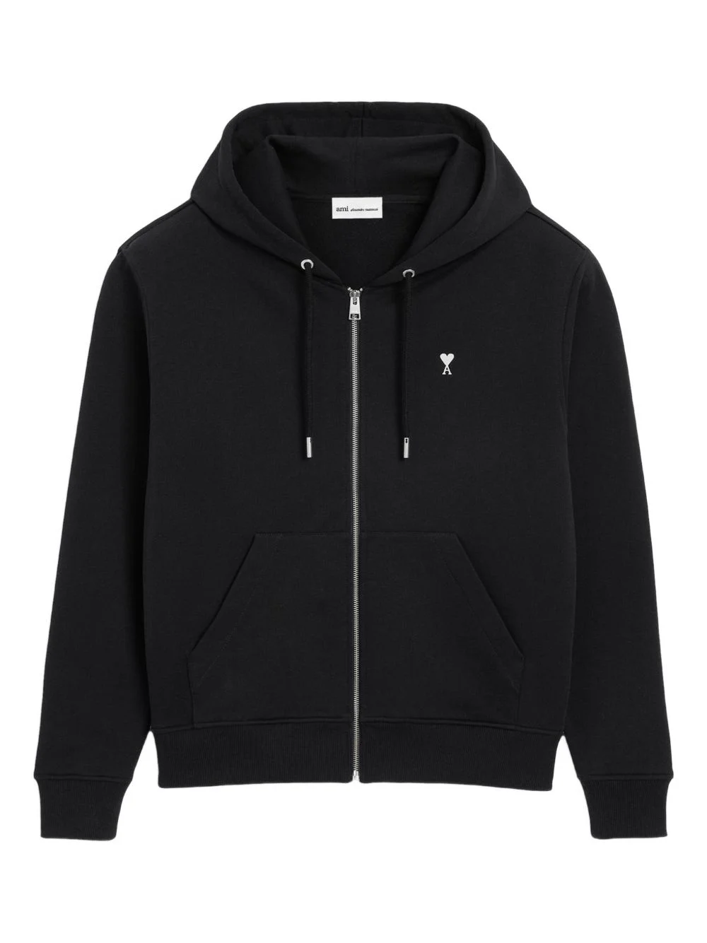 BLACK COTTON AMI DE COEUR ZIPPED HOODIE