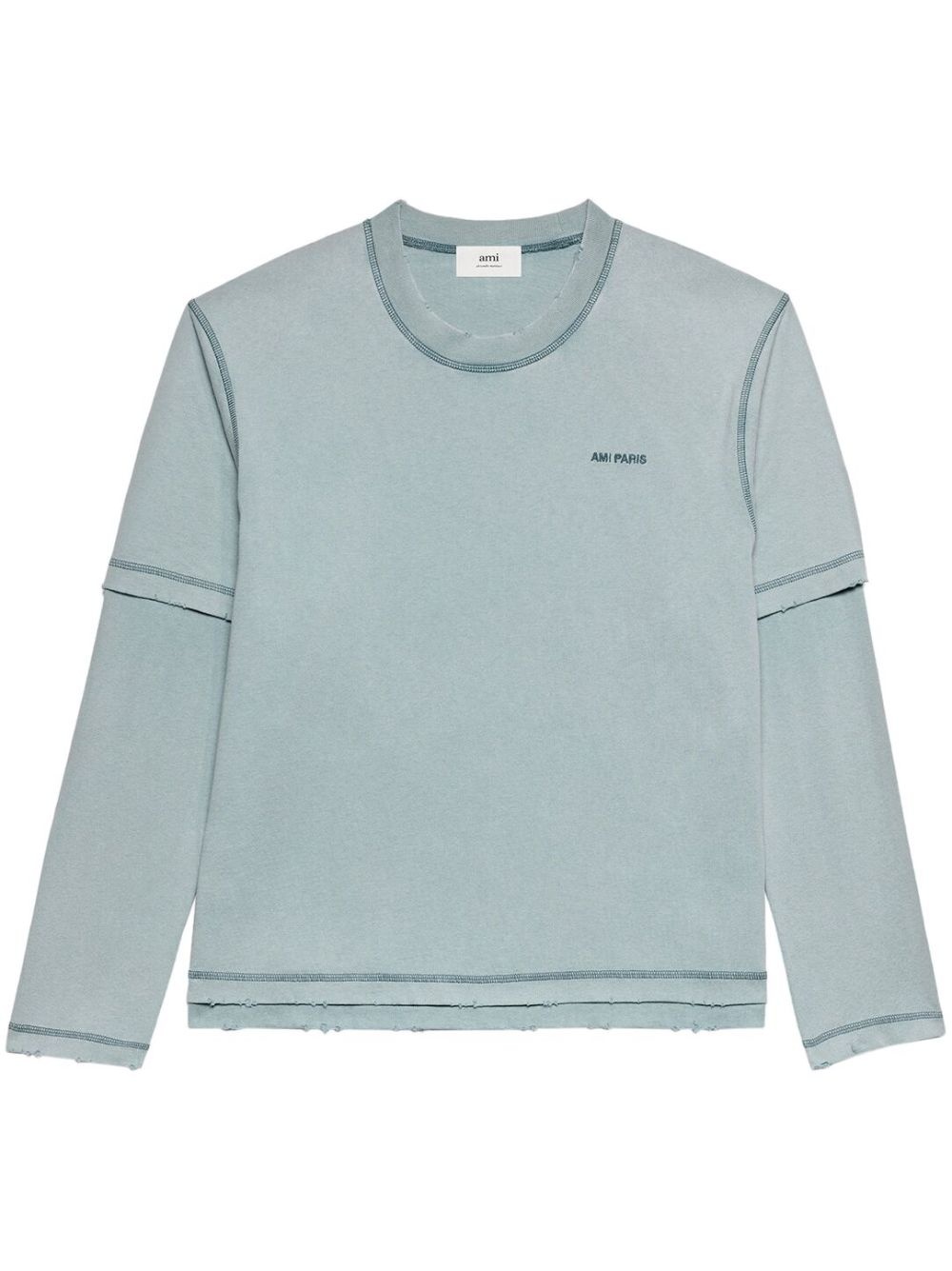 Ami de Coeur sweatshirt Inspired by the ace of hearts, the Ami de Coeur emblem has been AMI Paris' monogram since its introduction back in 2011. Here, a tonal embroidered iteration adorns the classic crew neck silhouette of this teal-blue sweatshirt. A tonal embroidered 'AMI PARIS' logo subtly details the left chest of the casual top. Highlights - Teal blue - Cotton - Signature ami de coeur monogram motif - Logo print to the front - Crew neck - Long sleeves - Straight hem - When buying this unisex item, keep in mind that it is graded in standard men's sizing. Imported Composition Cotton 100%